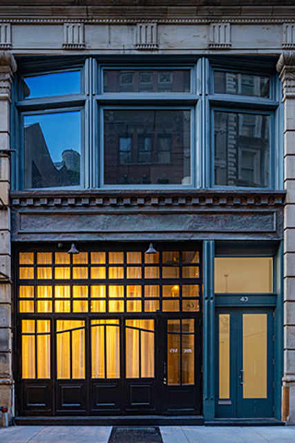 As a space of hospitality, the dining rooms are small and intimate with a variety of seating types to accommodate different groupings of diners but always with attention to the consistency of experience, from the character of the room to the finishing features to the lighting, details and views. On entry, the dark ceiling, the full height curtain and vertical emphasis of the louvers against the pre-existing masonry wall reinforce the dramatic height of the first dining room. The painted surfaces of the brick walls of the original building provide dappled uplighting which silhouettes the diners at the perimeter of the space. Passing from front to back, the bar and ceiling narrow and lower the route of passage, creating both an intervening scenario of activity and abundance in glassware, wine bottles and service activity and a prelude to the expansion vertically of the space beyond. Throughout, a similar detailing of wood millwork, decorative features, lighting and seating types insures consistency in the individual experience of the diner within the surprising variety of spatial experiences in a small space. The controlled view into the kitchen through a portal reminds patrons of the important work of this place, half machine with its supporting repository of food and drink and half dining venue. Throughout, a sense of community prevails with those served and those servicing them working in unison and harmony under the protection of Saint Urban.